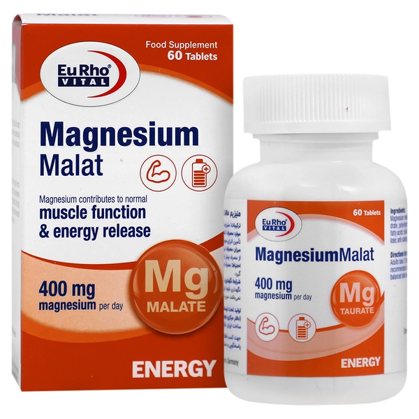 - منیزیم مالات یوروویتال، حاوی 400 میلیگرم منیزیم به فرم منیزیم مالات در هر دو عدد قرص