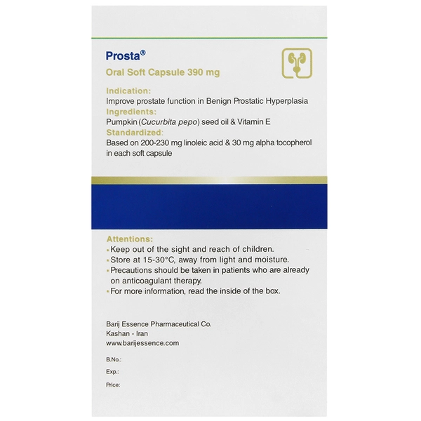- Prosta barij حاوی روغن بذر کدو (Pumpkin) و ویتامین E